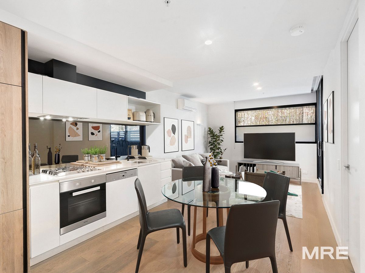 Nestled in a prestigious Armadale locale, this remarkable 1 bedroom apartment showcases a striking architectural design, offering a lavish lifestyle ideal for those looking to enter the market, downsize or invest. Crafted with meticulous attention to detail, the north-facing open-plan living/dining area features elegant timber floors and a gourmet kitchen equipped with top-of-the-line Miele appliances, integrated fridge/freezer, mirrored splashback and stone surfaces. The residence is marked by its commitment to quality and enhanced by a sunny balcony, ample bedroom storage, stylish bathroom with a floating wall-mounted vanity, split system heating/cooling, basement car space and storage cage. Step outside to discover the array of exclusive boutiques and cafes along High Street, enjoy tram access and Armadale train station at your doorstep and close to lush local parklands - this address epitomises convenience and sophistication.