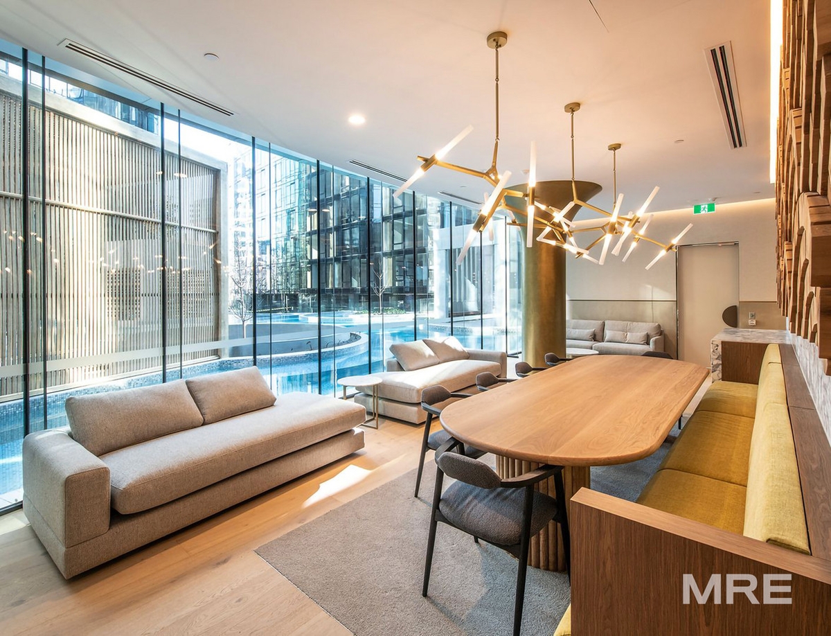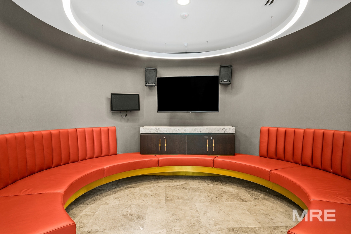The sleek interiors are complemented by split-system heating and cooling, a basement car space, and a storage cage. Residents enjoy resort-style amenities including a pool, private club, bathing pavilion, BBQ areas, cinema, wine bar, dining areas, fireplace, reading room, and karaoke pod.