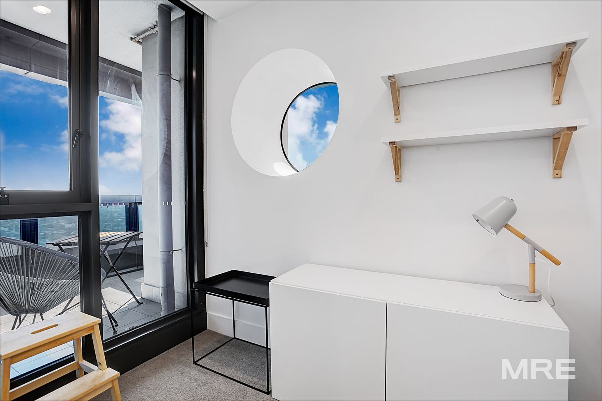 Perched in a sky-high position with breathtaking views of greater Melbourne, this furnished apartment has to be seen to be fully appreciated. The apartment offers a super spacious open-plan lounge/dining and is overlooked by a stunning kitchen with high-quality European stainless Miele steel appliances and stone benchtops. With an abundance of natural light thanks to your floor-to-ceiling windows, the open-plan lounge is complimented by a balcony with sweeping views over Melbourne. Featuring three bedrooms, a master with a walk-in robe and ensuite, the other two bedrooms come with gorgeous natural light as well as a private balcony with views of suburban Melbourne. A separate well-appointed bathroom and European Laundry complete the picture.