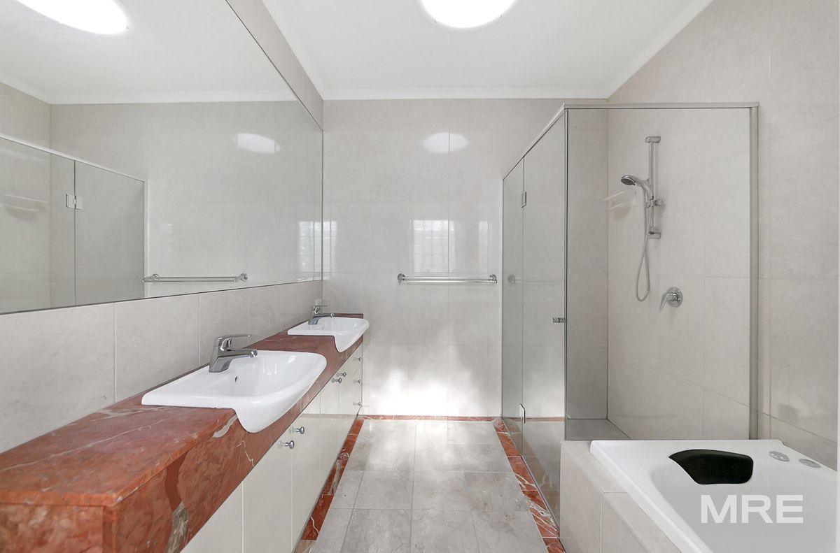 This exquisite double-story residence in the heart of South Yarra offers a blend of style, comfort, and modern living. The home features a formal lounge with a gas log fireplace and a spacious open-plan kitchen complete with granite benchtops, stainless steel appliances, a gas cooktop, and a dishwasher. The ground floor also boasts a separate family/meals area, while upstairs comprises three generously sized bedrooms with built-in wardrobes. The master suite includes an ensuite with double vanities, and there's also a study and a fourth bedroom with a built-in robe. The sparkling central bathroom features double vanities and a shower over the bath, with laundry facilities included.