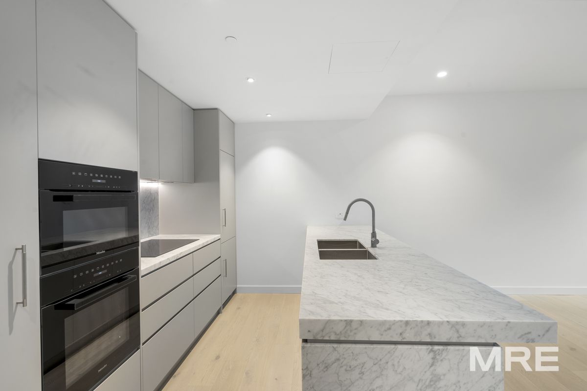 The apartment impresses with a spacious open plan living and dining area which opens up to your private balcony, perfect for entertaining. The kitchen is a culinary dream, equipped with high end integrated appliances including a built in fridge and freezer, microwave, oven, induction cooktop, and dishwasher. Premium finishes throughout, including stone benchtops and bespoke cabinetry. Master bedroom suite with mirrored built in robes. Stunning modern master ensuite with walk in shower. A great sized second bedroom with built in mirrored wardrobe. Central second modern bathroom with walk in shower. Additional features include, heating & cooling throughout and a European laundry.