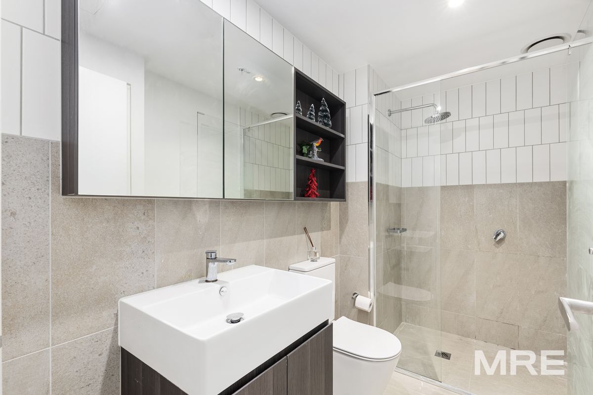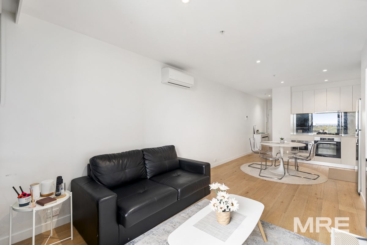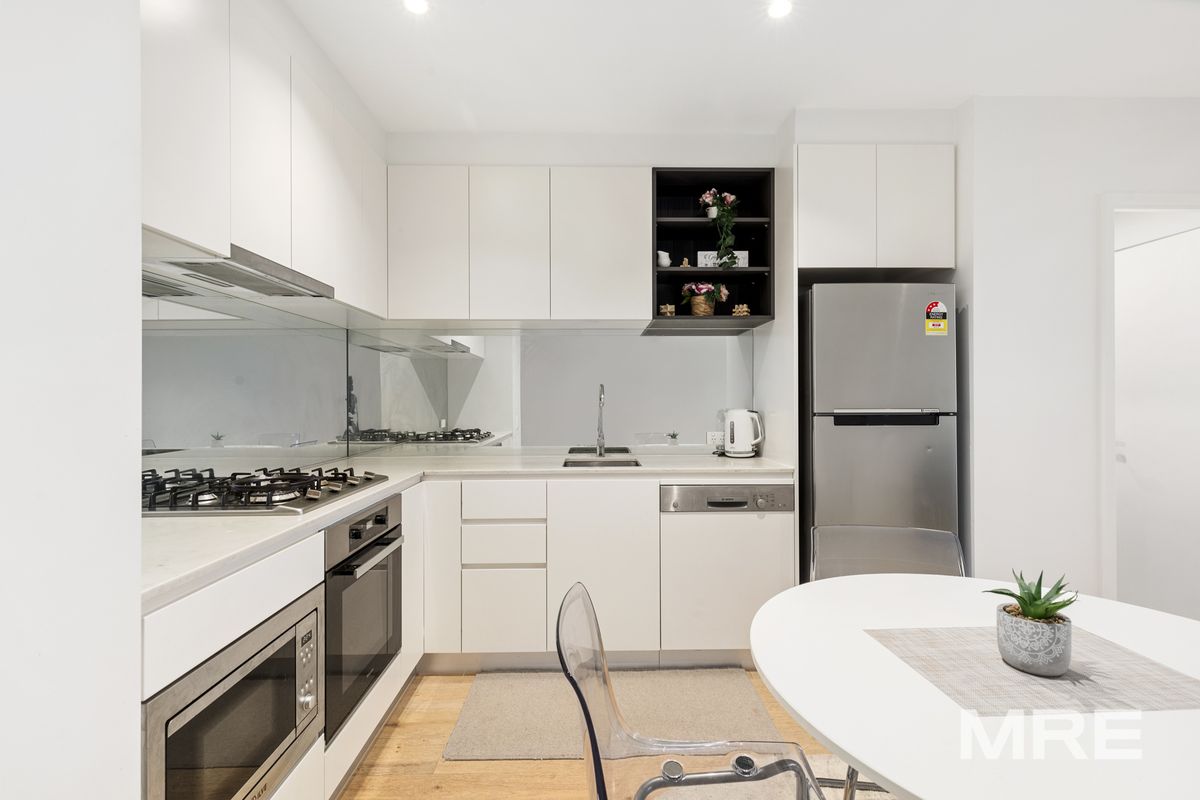 The open plan living and dining area is flooded with natural light with floor to ceiling windows and direct access to a private balcony, perfect for enjoying your morning coffee. The well appointed kitchen is both functional and beautifully designed, featuring stone benchtops, a gas stove, built-in microwave, and a full sized dishwasher. The luxurious bathroom offers a walk in shower, modern vanity & European laundry. The master bedroom is generously sized, complete with built in mirrored robes and large windows.