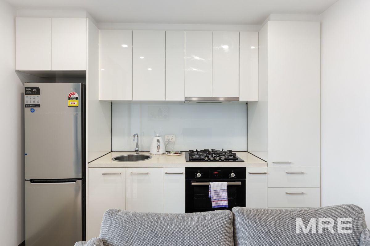 The well-appointed kitchen features sleek stone benchtops, stainless steel appliances, including a gas cooktop and integrated oven. The spacious bedroom includes mirrored built-in robes, offering ample storage. The central bathroom boasts quality finishes & large shower and the European laundry comes complete with a washing machine. Additionally, a fridge is included, making this apartment ready for you to move straight in.