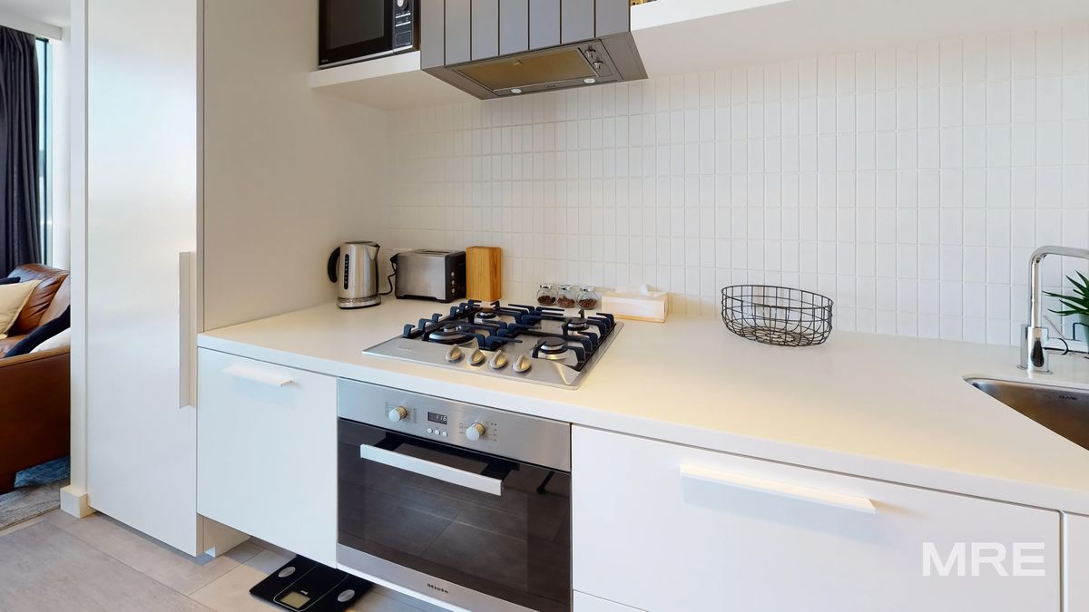 Bathed in natural light, this north-facing residence on the 13th floor offers elevated living with uninterrupted views across Melbournes skyline. The open-plan living and dining area flows seamlessly onto a private balcony, perfect for morning coffee or evening entertaining. The sleek kitchen features stone benchtops, premium appliances, and ample cabinetry, making it both stylish and functional.
