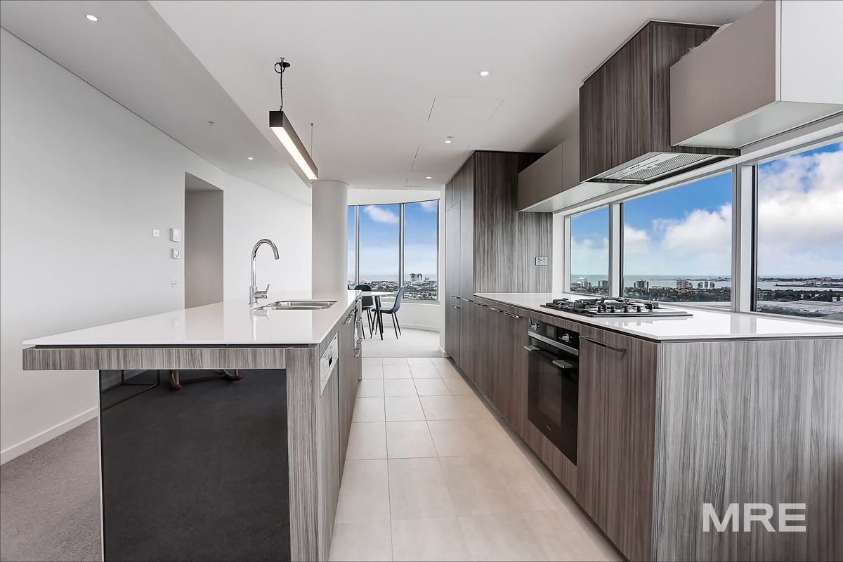 This fully furnished apartment features a stunning open plan living room with sensational views that opens to a flexible winter garden. The substantial kitchen has stone benchtops, European appliances including gas cooktop, oven, dishwasher, in-built fridge, and microwave. The master bedroom has a built in robe and ensuite featuring dual basin, a bath-tub and shower. The substantial second and third bedroom also features a built in robe and is serviced by a central bathroom. The third bedroom offers some flexibility - you can use it as a home office, a study, or as the third bedroom. Please do let us know your preference. European Laundry, two basement car spaces, and a storage cage completes the picture.