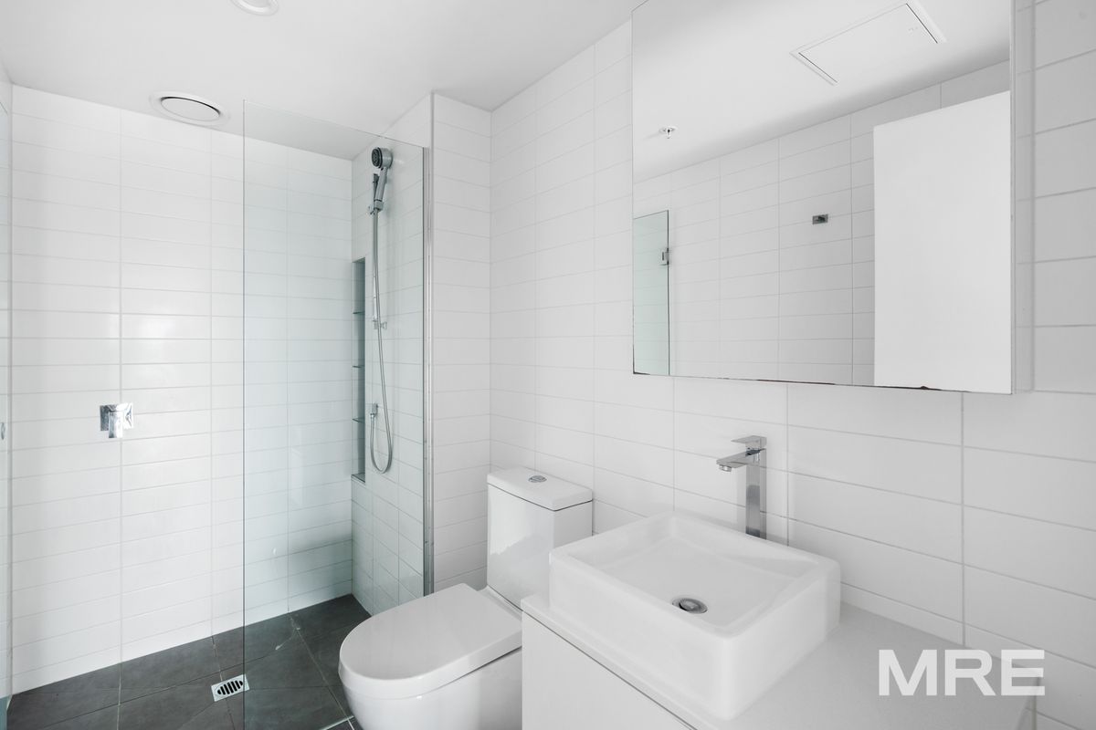 Perched high on the 31st floor with amazing views. This apartment offers a state of the art kitchen with stone bench tops, glass splash back, timber look finishes with a study space. The air-conditioned living space is well designed and light filled, with floor to ceiling windows. The bedrooms boast built in robes and is serviced by the stunning bathroom which has been designed to not only impress the eye, but to be a functional space and offers a European laundry.