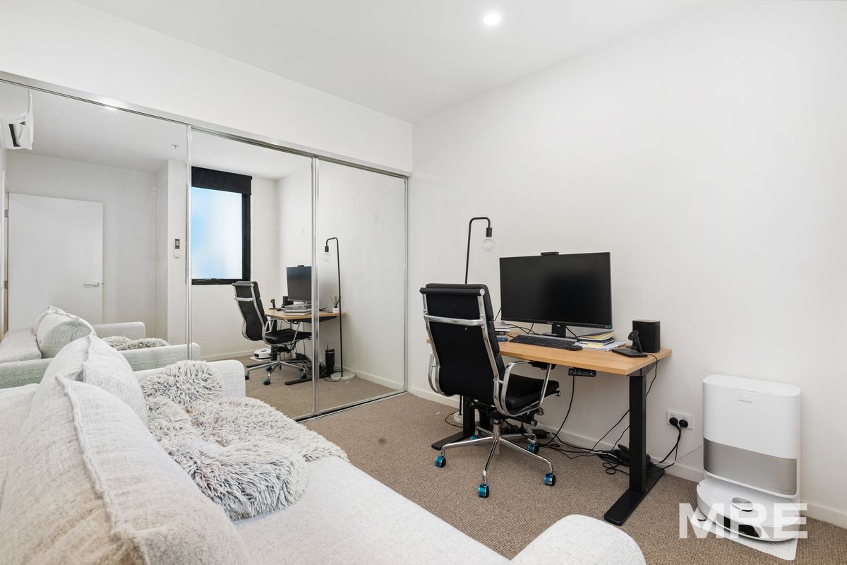 A superb blend of quality finishes and abundant natural light defines this stunning two bedroom, two bathroom modern apartment designed for effortless entertaining. Bathed in northern sunlight, the spacious open-plan living and dining area is complemented by a sleek stone-finished Smeg kitchen featuring induction cooking, electric under-bench oven, dishwasher, and generous pantry and storage options. Positioned on level two, the apartment enjoys a leafy outlook from the spacious, low-maintenance balcony with views across Swan Street and glimpses of the city skyline.