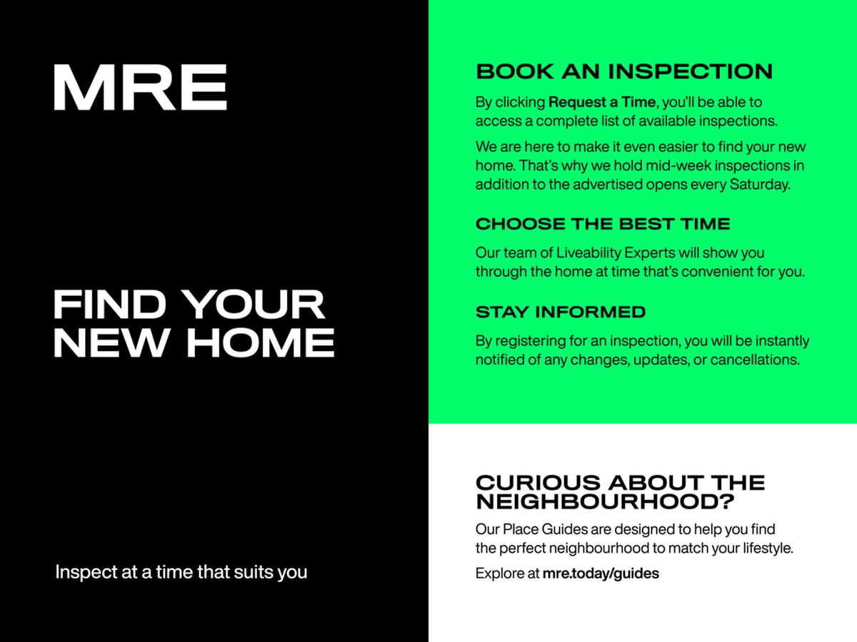 Booking an inspection is easy! Simply click on "Request a Time" to register your details for an inspection time that suits you. Alternatively, "Get in Touch" with our Liveability Agents to enquire today, we look forward to meeting you soon!
