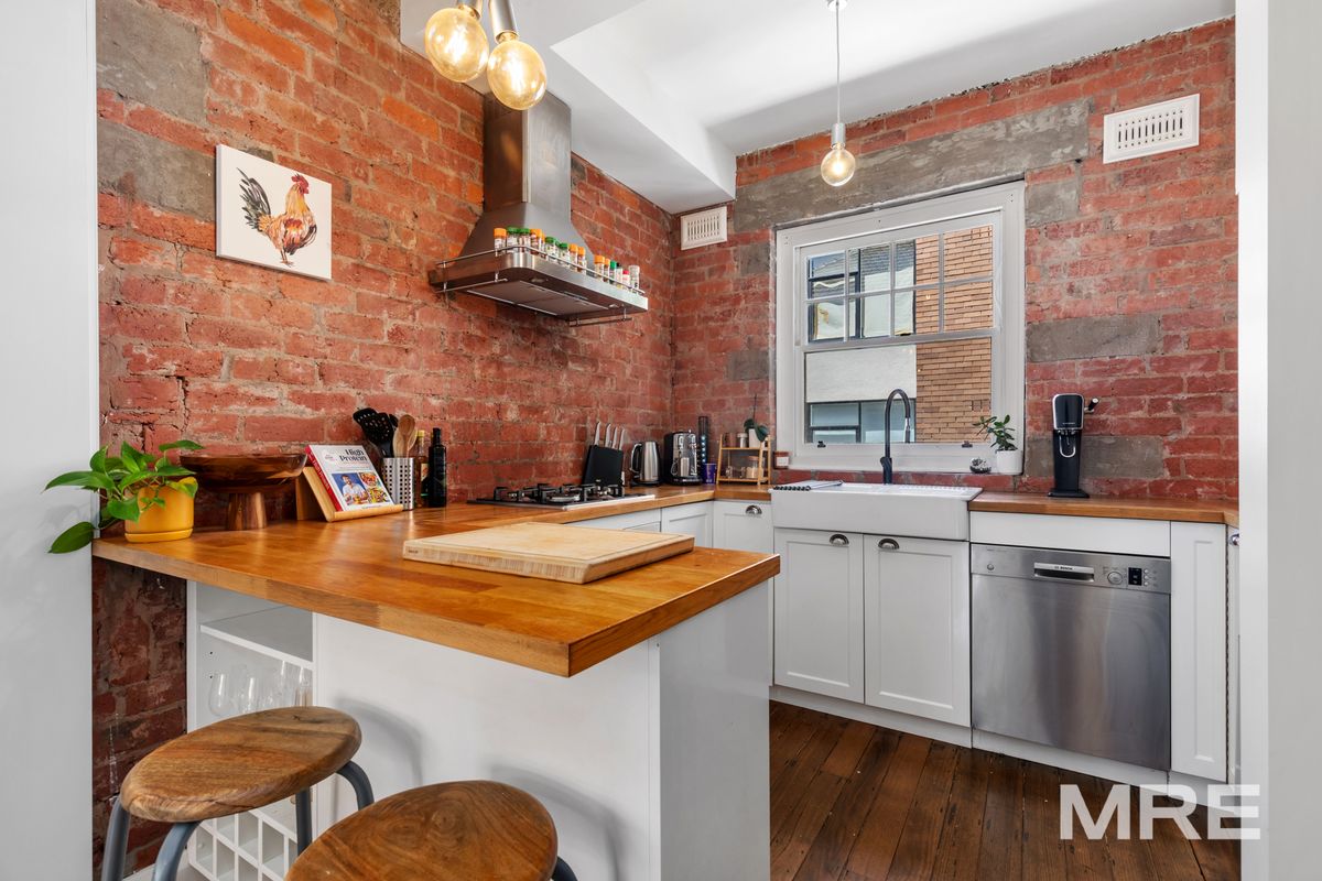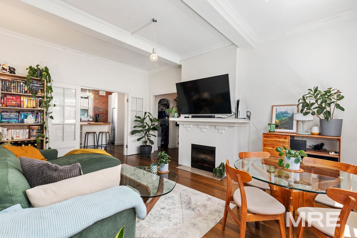 The expansive open plan living and dining zone is a true highlight, featuring polished floorboards, a charming feature fireplace, and a split system for year round heating and cooling. Large windows allow sunlight to flood the space, creating a warm and welcoming atmosphere, while the layout easily accommodates both living and dining furniture. Sliding doors open onto a private balcony, providing a peaceful outdoor retreat for relaxing or entertaining. The stylish kitchen is both functional and elegant, equipped with a gas cooktop, dishwasher, ample cupboard storage and a generous breakfast bench. The master bedroom is spacious and serene, complete with robes and its own split system for added comfort. The second bedroom is also generously sized, offering flexibility as a bedroom or a dedicated working from home space. Completing the apartment is a well presented modern central bathroom.