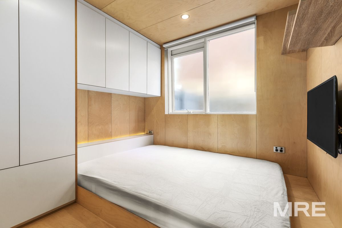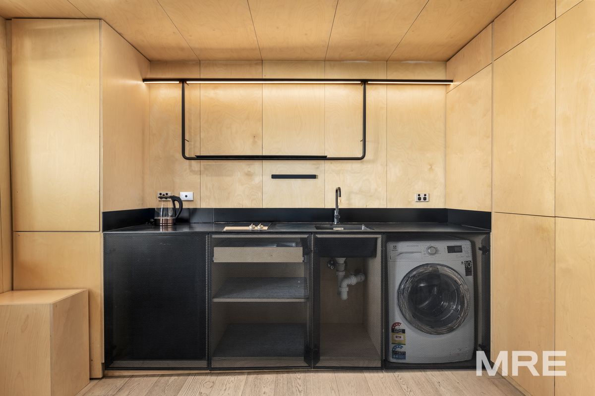 The open plan living and dining area is flooded with natural light and enhanced by sleek floorboards throughout. A split system provides year round heating and cooling, while the thoughtful layout creates a warm, modern atmosphere perfect for relaxing or entertaining. The galley style kitchen is both functional and stylish, featuring an electric cooktop, ample cabinetry and an integrated washing machine for added convenience. The master bedroom comfortably accommodates a queen sized bed and offers a peaceful retreat, complemented by generous storage. The modern bathroom is finished to a high standard with floor to ceiling tiles and a sleek, contemporary design.
