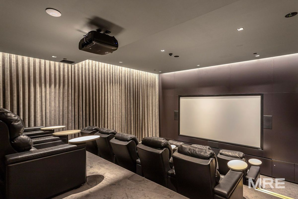 Residents enjoy access to premium facilities including a heated lap pool, sauna and steam rooms, gym, private theatre, virtual golf, private dining spaces, BBQ areas, and a landscaped sky garden.