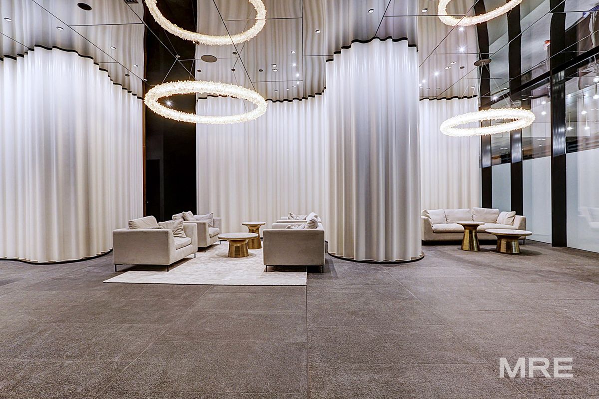 Positioned on the 51st floor, the apartment presents as near new, featuring engineered oak flooring, a sleek stone kitchen with Miele appliances, heating and cooling, and full-height windows capturing expansive city views.