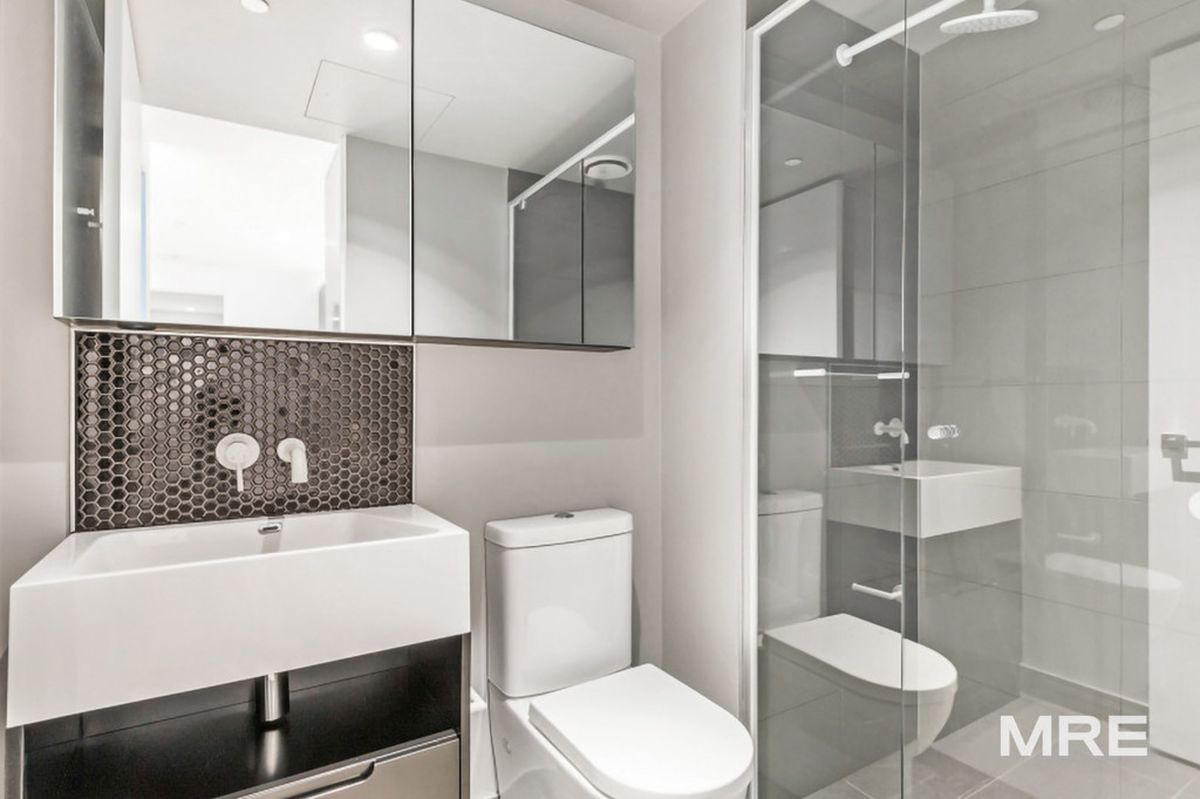 The bedrooms are filled with an abundance of natural light and enjoy views across Melbourne offering room for a queen-sized bed with bed side tables and mirrored built in robes. Lighthouse apartments are fitted with designer bathrooms offering plenty of space and are complete with a Euro laundry.