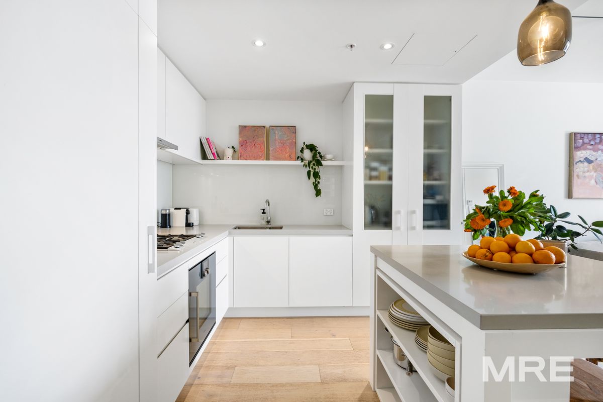 Perfectly laid out with both a meal and lounge zone, the style is clearly evident. Lights come on when the pantry is opened, nothing less than Gaggenau appliances are suitable for the stunning kitchen, and the island bench. Everything is ducted, integrated or soft close. The bedroom is perfectly proportioned with fully fitted built in robes and the fully tiled bathroom is simply stunning. The apartment has a euro laundry, wonderful balcony along with basement car parking.