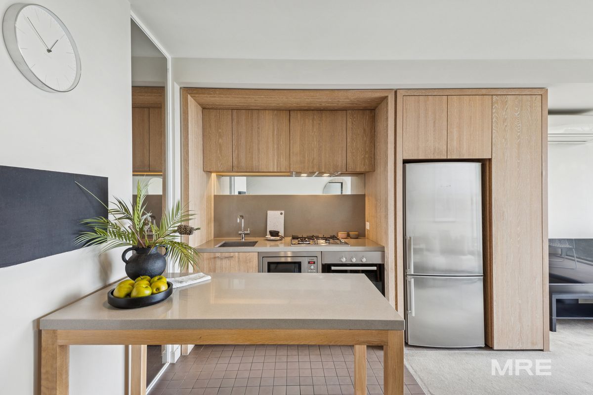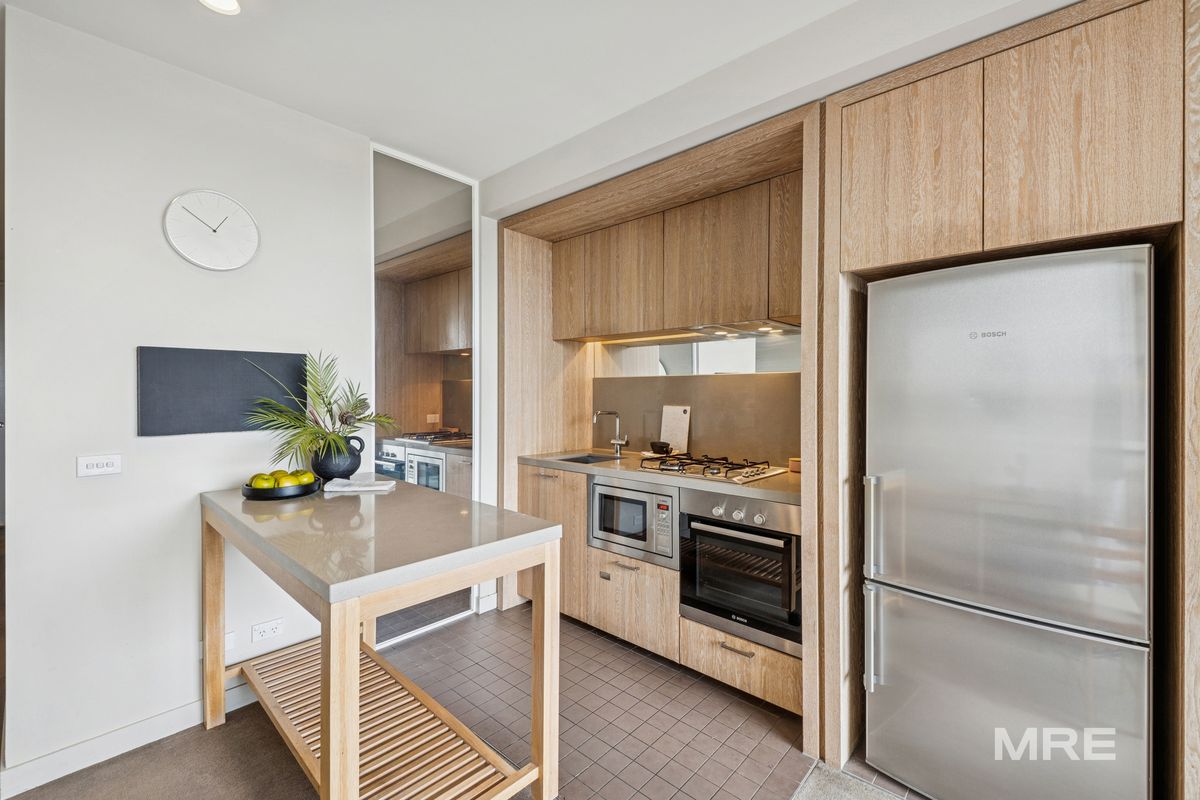 Bathed in natural light, this elegant apartment features full-height windows that illuminate the open-plan living and dining area. The space flows seamlessly to a private balcony, where you can enjoy stunning, uninterrupted views. The stylish kitchen is finished in a Scandinavian-inspired timber palette and is well-appointed for everyday living and entertaining.
