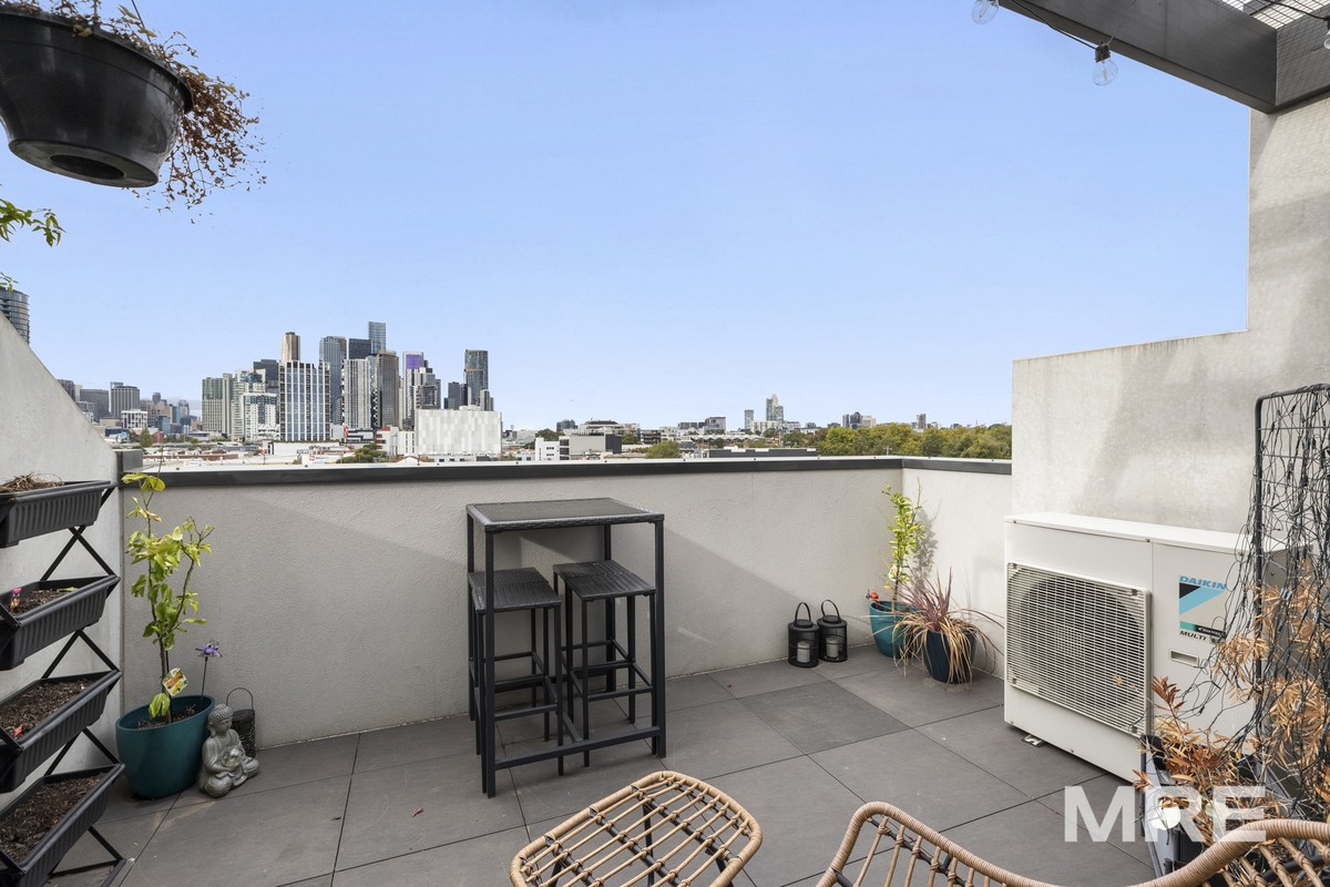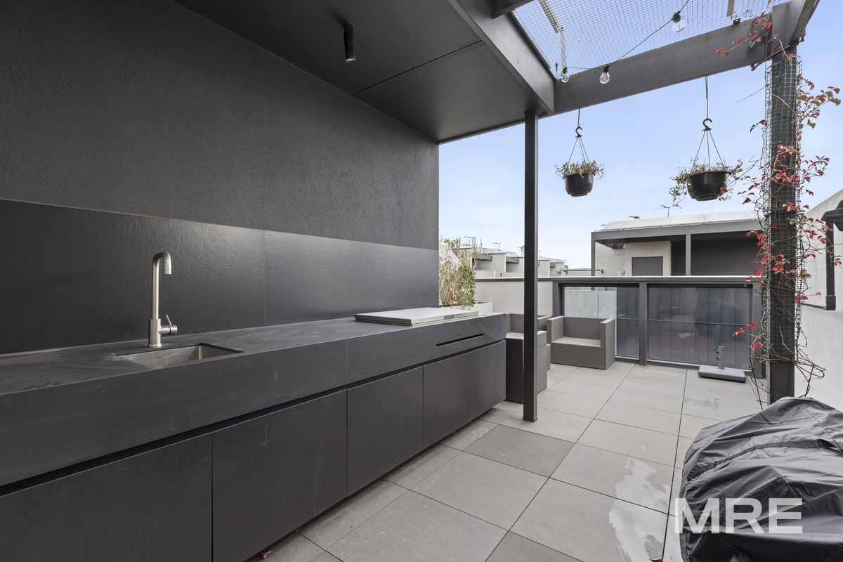 At the top of the home, an expansive rooftop terrace provides the perfect space for entertaining while enjoying impressive views of the Melbourne CBD skyline.